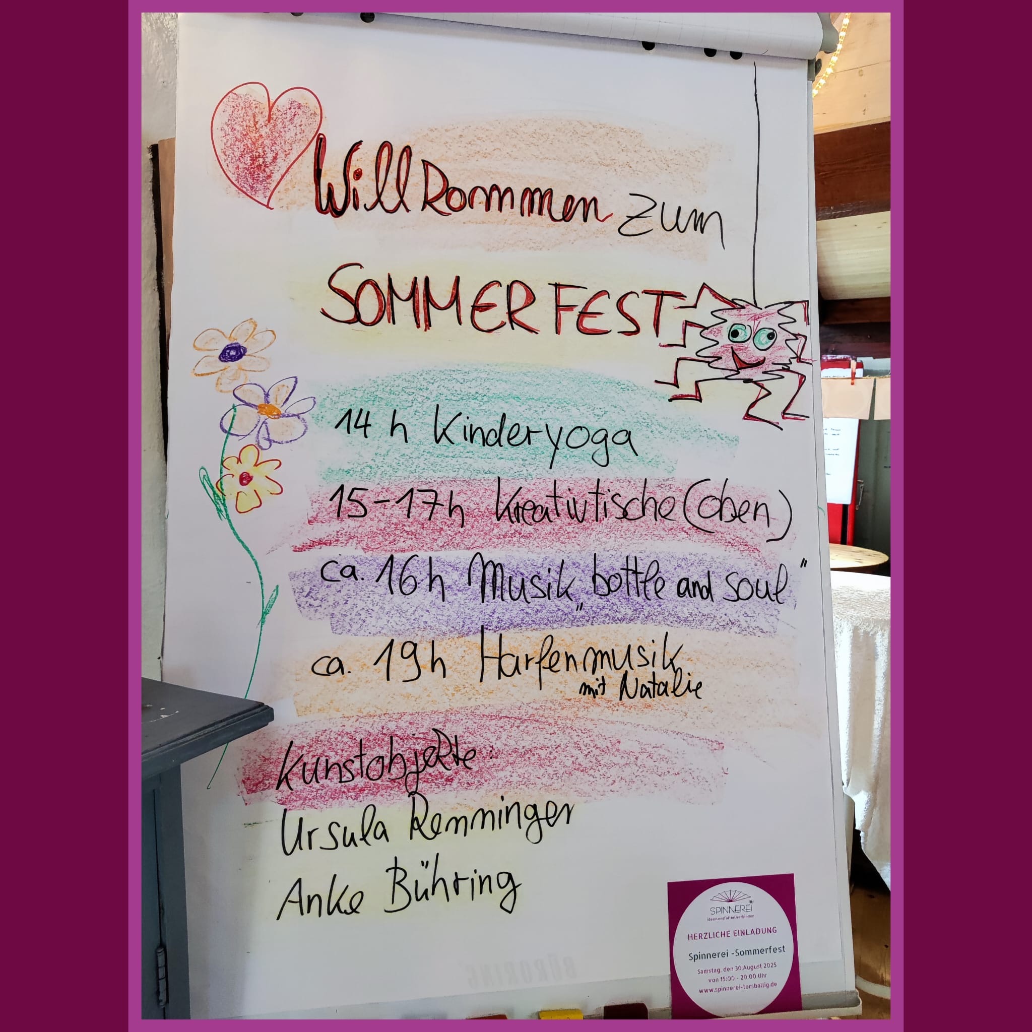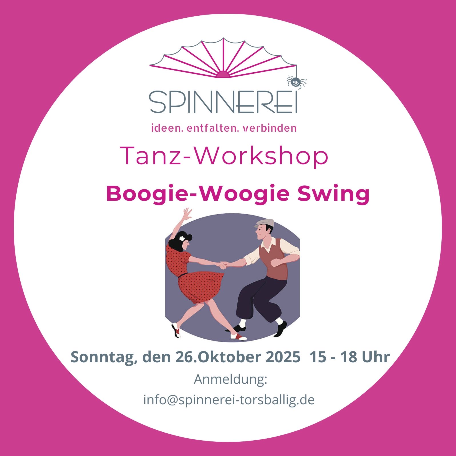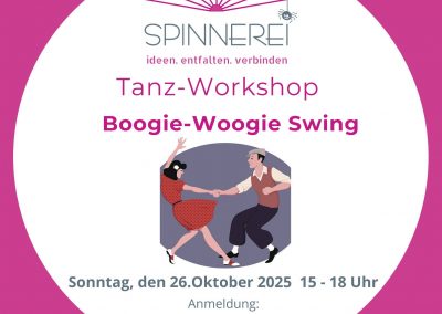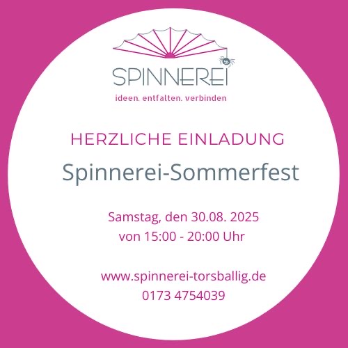 Einblick in die Spinnerei Boogie-Woogie Tanzkurs 28.10.2025 Kinderyoga-Ausbildung 13./14.09.2025 Sommerfest 30.08.2025 Tag der offenen Tür 23.2.2025